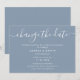 Anuncie o adiamento do seu casamento com este cartão minimalista em azul poeira com uma fonte de letra moderna.