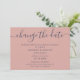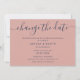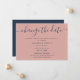 Anuncie o adiamento do seu casamento com este cartão minimalista azul marinho e rosa velado com uma fonte moderna de caligrafia.
