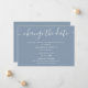 Comunique o adiamento do seu casamento com este cartão minimalista em tom azul, apresentando uma fonte de caligrafia moderna.