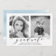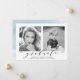 Nossos anúncios de fotos de graduação "Agora e Depois" na na moda mostram a foto favorita do seu mais velho (agora) assim como uma foto de bebê ou criança (então). Alterar os anos abaixo de cada foto para refletir o ano de graduação e o ano de nascimento (ou a foto do ano foi tirada). Os modernos anúncios de graduação exibem "formando" em uma letra elegante com o nome do formando, o nome da escola e o ano de classe abaixo. O verso do anúncio do formando apresenta um fundo azul claro de aquarela. Adicione uma foto ou texto ao fundo para obter um design mais personalizado!