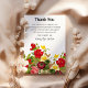 Cartão de agradecimento de funeral floral colorido para enviar aos amigos e familiares que mostraram amor e gentileza durante o seu momento de luto. Apresentando flores vibrantes rosa, vermelhas e roxas, folhagem verde e borboletas amarelas e um modelo de agradecimento que pode ser facilmente personalizado.