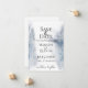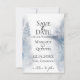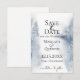 Lavagem em aquarela em tons de azul de inverno com detalhes de flocos de neve, cartão de salvar a data de casamento.
