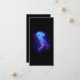 Água-viva grande, azul, desenhada artisticamente, brilhante, brilhante, com longos tentáculos sobre fundo preto com bioluminescência roxa. Água-viva luminosa.