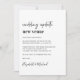 Alteração moderna mínima do anúncio do casamento. "atualização de casamento novo local" é escrito em uma mistura de um roteiro contemporâneo e tipografia ousada de tendências (você pode personalizar isso para "nova data", "casamento menor", etc). Personalize sua mensagem de alteração de planos, adicione seus nomes em um script semelhante a assinatura e adicione seu site de casamento no lado oposto ou deixe o vazio.