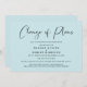 Mudança moderna e mínima de planos de casamento azul-claro, adiamento ou cancelamento. "Mudança de Planos" é escrito em um roteiro de na moda e você pode facilmente personalizar se o casamento foi cancelado, a data foi adiada ou se outros detalhes foram alterados.