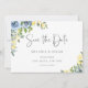 Anúncio Amarelo Azul Desbotado Floral Foto Guardar a Data