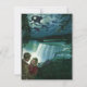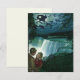 Imagem de ilustração antiga de amor e romance com um jovem casal recém-casado em lua de mel nas Cataratas do Niágara. Uma noite romântica perto da cachoeira sob a luz da lua cheia.