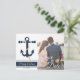 Este cartão postal com desenho de âncora/tema náutico é uma ótima maneira de impressionar seus convidados com sua própria foto do noivo e da noiva - tema oceano - Personalize o texto com os nomes do noivo e da noiva, data, local. Arte por ChanDraws Art & Design.