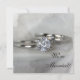 Anuncie seu casamento privado recente ou fuga secreta com o elegante Cartão de Anúncio de Casamento Anéis de Noiva em Cinza. Este clássico anúncio de casamento personalizado apresenta uma fotografia aproximada digitalmente aprimorada de um anel de noivado de diamante e conjunto de aliança com um fundo cinza suave.