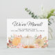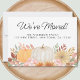 Você vai para casa em breve? Este charmoso cartão móvel é decorado com abóboras aquáticas, folhagem de outono e flores. Ele diz "Nós nos movemos!" na tipografia de na moda. Facilmente personalizável. Original Watercolor © Michele Davies.