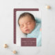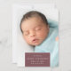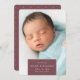 O anúncio de nascimento em chic e moderno apresenta uma foto vertical/retrato de cheio sangrando com um elemento retangular na parte inferior, com o nome do bebê, data de nascimento e estatísticas de nascimento. Adicione uma mensagem pessoal ao verso, juntamente com uma foto adicional.