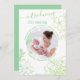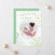 Cartão de nascimento fotográfico com delicadas linhas desenhadas flores e folhagem, escrita à mão e tipografia química. A modelo está pronta para você adicionar uma foto de bebê ou de família com seu novo bebê. Você também pode adicionar suas estatísticas e nomes de nascimento de bebês, que automaticamente curvam em volta do topo e do fundo da sua foto. A design botânica e a tipografia têm uma paleta de cores em tons de verde modernos.