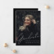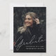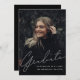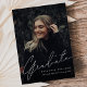 Este Anúncio de graduação de dois gráficos de script simples moderno apresenta uma foto de tamanho de cheio na parte frontal com uma sobreposição de texto branco e uma foto de trás com detalhes opcionais.