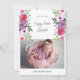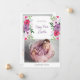 Cartão Floral de Anúncio de Nascimento de Foto apresentando seu novo bebê, que você pode personalizar com 2 fotos de seu bebê, nome do bebê, estatísticas de natalidade e mensagem curta. O nome do bebê é escrito manualmente e o design tem bonito arranjos florais de anêmona, papoila e flor silvestre em tons roxos e cor-de-rosa com verde suave. Perfeito anunciando o nascimento do seu bebê na primavera ou estação de verão.