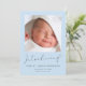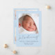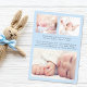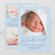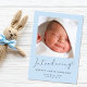 Um simples e fofo anúncio de nascimento azul pastel com tipografia de cinza mole. A frente apresenta a foto do seu recém-nascido, o nome do cheio, a data de chegada e as estatísticas de natalidade, e "Apresentando" escrito em um roteiro de na moda com o fim de um coração florescente. No verso do cartão, você pode adicionar três fotos adicionais e nomes de pais e irmãos, e um obrigado, uma visita ou outra mensagem.