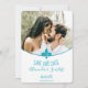 Anuncie seu próximo dia de casamento para a família e amigos com este simples e elegante Aquamarine Fleur de Lis Foto Salvar o Anúncio de Data. Salve a data em que o design apresenta um desenho arquitetado adorado com um aquamarine fleur-de-lis armando sua própria foto. Cores adicionais disponíveis com este design também. Se precisar de assistência com personalização, entre em contato comigo diretamente.