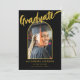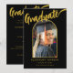 Comemore a conquista da sua filha na faculdade, universidade ou segundo grau com um Formando minimalista impressionante Cartão de Anúncio de Arca Fotográfica preto e dourado. Este na moda, moderno, capta a essência da ocasião, com elegante caligrafia de guião dourada num pano de fundo negro impressionante, belamente complementado por um elegante modelo de fotografia de formando de arco dourado. A frente do cartão exibe a palavra formando em roteiros de caligrafia na moda dourada e o nome e a graduação da sua filha em tipografia dourada moderna, enquanto o verso oferece espaço para informações adicionais em elegantes inscrições douradas modernas. O modelo de foto incluído torna a personalização do cartão com uma imagem tesourada do seu formando sem esforço, criando uma manutenção única. Criada com uma obra de arte original pela artista Catherine Sweetman, esta carta é um refinado e na moda tributo à sua conquista, perfeita para compartilhar seu marco importantíssimo com amigos e familiares.