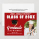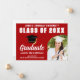 Este convite de festa de formatura personalizado moderno vermelho e branco ou anúncio de formatura apresenta uma tipografia branca clássica do nome da sua faculdade para a turma de 2026. Personalize com o ano de formatura sob o elegante texto manuscrito preto e o chapéu de graduado preto para cartões incríveis. Adicione os detalhes da sua festa no verso.