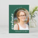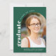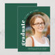 Um simples cartão de anúncio de graduação branco verde moderno para celebrar o novo graduado do ensino médio. O design apresenta sua foto favorita emoldurada dentro de um arco com uma tipografia em negrito. Personalize com seu nome e escola.