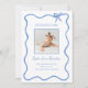 Este anúncio de natalidade chic e elegante apresenta uma mão azul desenhada, ondulada, ilustrada com um arco em torno da foto do seu bebê recém-nascido, e um roteiro manuscrito de na moda em um simples fundo branco. Perfeito para um bebê recém-nascido.
