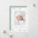 Bem-vindo ao seu novo pacote de alegria com este anúncio de nascimento do arco verde na moda. A frente destaca a foto vertical do seu bebê emoldurada por fitas verdes e arcos desenhadas à mão num fundo branco, com o nome e os detalhes de natalidade em um doce guião manuscrito. A parte traseira apresenta uma foto horizontal com espaço abaixo para uma nota personalizada, perfeita para compartilhar uma mensagem sincera. Uma escolha encantadora para um anúncio de nascimento botânico moderno ou neutro em termos de gênero.