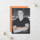 Convite moderno minimalista de arte deco laranja para formatura na faculdade ou ensino médio, festa de formatura simples, casa aberta ou celebração de formatura. Laranja funciona para Universidade do Texas, Tennessee, Auburn Clemson, Flórida, Virgínia e qualquer escola de ensino médio que tenha o laranja como cor principal. Personalize o texto e adicione sua foto de formatura vertical. Espaço para uma mensagem pessoal do formando está incluído no verso do convite.