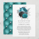 Anúncio de casamento adiado com flores de brilho falsas em turquesa rústico (teal), preto e prata com estofamento de couro tufado com diamantes personalizável para os detalhes do seu evento.
