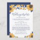 Se as circunstâncias exigirem que você mantenha seu casamento pequeno, você pode informar sua família e amigos que não poderão comparecer com este anúncio de casamento moderno, brilhante e alegre, apresentando aquarelas amarelas e azuis-navais de girassóis, flores e folhagens, "Atualização do Casamento" em elegante letra cursiva azul-marinho e os detalhes em tipografia simples azul-marinho. Você pode personalizar facilmente "Atualização do Casamento" para algo semelhante em extensão (por exemplo, "Casamento Menor", "Casamento Reduzido", etc.), sua mensagem de casamento reduzida com mais detalhes e adicionar quaisquer eventos de casamento virtual e celebrações futuras.