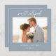 Anúncio de fuga sem recepção | Cartão de anúncio de casamento 'Nós fugimos' com letra manuscrita simples e elegante em azul poeirado para minimalistas | Cartão de casamento de fuga com caligrafia |