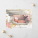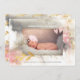 Um anúncio de nascimento de uma menina, cinza e ouro pintado moderno. Design moderno e simples com pintura abstrato em ouro, rosa e cinza. Insira a foto da sua menina e personalize o nome e as estatísticas na frente. A foto tem uma linha fina, dois corações e uma folha de ouro à sua volta. Coordenando as costas com as mesmas folhas de trabalho de arte e ouro. Design pelo Emporium de Jenn.