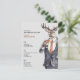 A plain and simple bachelor party invitation template for men. All the text can be personalized. The front of the card features a stag (a deer with a beer, so to speak), cheering the card recipient. A little hint of what is likely to happen at this bachelor party. On the back is a group of other animals, which of course also all hold a beer in their hands. The front represents the groom, the back the bachelor party group.
