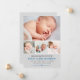 Este cartão de anúncio de na moda e doce fotografia apresenta quatro (4) fotos do seu bebê recém-nascido, texto personalizado que pode ser personalizado, sotaques cardíacos e de stripe, e um esquema de cores de cinzas leves, carvão e azul de cobalto.