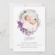 Apresente o seu pequeno ao mundo com este elegante cartão de anúncio de bebê com um delicado quadro floral roxo. O espaço de fotos personalizável destaca os primeiros momentos do seu bebê, enquanto a tipografia suave adiciona um toque de sofisticação. Perfeito para compartilhar sua alegria com amigos e familiares, esta design inclui detalhes como nome do bebê, data de nascimento e mensagem de boas-vindas. Totalmente personalizável para um anúncio pessoal e sincero.