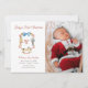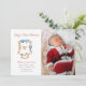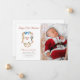 Apresente seu pequeno pacote de alegria! Este cartão de Primeiro Natal do Bebê com o brasão do soldado quebra-nozes em aquarela e monograma. Adicione a foto adorável do seu bebê, tornando-o perfeito para compartilhar a notícia emocionante com amigos e familiares.
