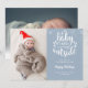Cartão de anúncio de nascimento de férias super fofo bebê está frio lá fora para você personalizar com suas 2 fotos especiais de bebê, mensagem de Natal, nomes e estatísticas de nascimento. Você pode até personalizar a cor do fundo na frente para combinar com o tema das suas férias. Criado por Thisisnotme©