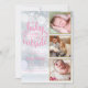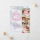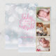 Um cartão de anúncio de nascimento de Natal com colagem de 3 fotos elegante para você personalizar com suas 3 fotos especiais em molduras douradas, mensagem de Natal, nomes e estatísticas de nascimento. O verso apresenta flocos de neve caindo. Criado por Thisisnotme©