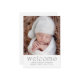 Um simples anúncio de nascimento moderno para compartilhar a notícia do seu bebê recém-nascido. O cartão neutro por sexo é perfeito para o seu bebê ou menina. Ela mostra uma foto na frente e bem-vinda e é personalizada com o nome do bebê, data de nascimento, estatísticas de natalidade e uma mensagem pessoal da mãe e do Pai