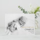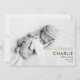 Cartão de nascimento de bebê com foto de ouro moderno para apresentar seu lindo bebê recém-nascido. A frente mostra uma foto do seu bebê junto com ouro chic e texto preto para o nome do seu bebê e estatísticas de natalidade. O reverso está espalhado com corações de ouro ao redor de sua mensagem pessoal e nomes em ouro chic e texto preto. Projetado por Thisnotme©