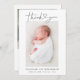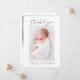 Cartão de nascimento simples e minimalista, com tipografia escrita à mão que diz "obrigado-te" com coração no meio. Você pode adicionar a foto do seu bebê recém-nascido no meio e as estatísticas do bebê no fundo. Você também pode adicionar uma segunda imagem com uma mensagem no verso.