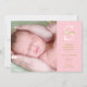 Um cartão de nascimento de menina de um monograma moderno para apresentar sua linda bebê recém-nascida. A frente inclui uma foto de bebê, um monograma inicial e um status de nascimento de ouro e uma mensagem em fundo rosa. O reverso tem mais três fotos de bebês. Projetado por Thisnotme©