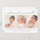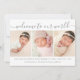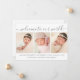 Um simples cartão de anúncio de nascimento moderno para compartilhar a feliz notícia da chegada do seu bebê. O design apresenta uma colagem de 3 fotos de suas fotos favoritas com boas-vindas ao nosso mundo em roteiro manuscrito. Personalize com o nome do bebê, data de nascimento, estatísticas de nascimento e nomes dos pais. Sexo neutro funcionará para uma menina ou um bebê.