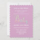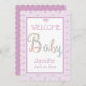 Um novo cartão de anúncio de bebê de boas-vindas, projetado em branco e roxo suave com texto colorido: BABY, juntamente com o nome do bebê e data de nascimento em um fundo branco com borda de corações roxas. O lado inverso inclui seus Detalhes do Anúncio de Nascimento, em um fundo roxo suave. Para personalizar, basta inserir o nome do bebê e outros detalhes em nosso modelo passo a passo, substituindo o texto de amostra. É rápido e fácil.