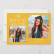 Modern and whimsical graduation announcement photo card featuring2 photos on the front and 1 on the back. The text says "The Best Is Yet To Come" with twinkling stars. Add the graduate's name, information, and message to personalize this card. Yellow color.
