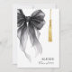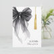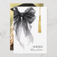 Elegant and modern stylish graduation announcement photo card showcasing graduation cap tassel decorated with black watercolor bow in coquette style.