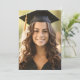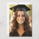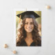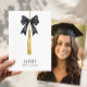 Elegant and modern stylish graduation announcement photo card showcasing graduation cap tassel decorated with black watercolor bow in coquette style.