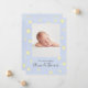 Bem-vindos à sua pequena com este anúncio de nascimento fotográfico em azul macio de bebê, apresentando uma ilustração de aquarela fofinha inspirada pela clássica rima de berçário, A Vaca Saltou Sobre a Lua. Acentuada com estrelas quentes e detalhes lúdicos, esta design emparelha lindamente a foto do seu bebê com estatísticas de natalidade personalizadas em uma fascinante tipografia. Uma maneira doce e mágica de compartilhar sua alegria com a família e os amigos enquanto cria um tesouro.
