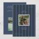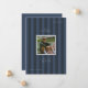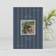 Graduation photo announcement card with a sporty, blue striped background, ideal for athletes.