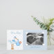 Cartão com fotos com cegonha azul e bebê com fundo cardíaco mole. Anúncio de nascimento perfeito ou cartões de agradecimentos para a nova menina. Cartões são fáceis de personalizar com seu próprio texto e foto para anúncios de nascimento, cartas de agradecimento, etc. As placas são completas com envelopes.