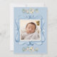 Sweet vintage blue watercolor frame with elegant fonts with your new baby photo. Add all baby stats on reverse side with blue and white polkadots and whimsical frame. So cute for that boy or girl. 100% customer satisfaction with “Zazzle”