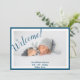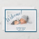 Bem-vindo! Azul doce com padrão de bebê de cinza atrás. Um belo anúncio de parto para anunciar suas maravilhosas notícias.